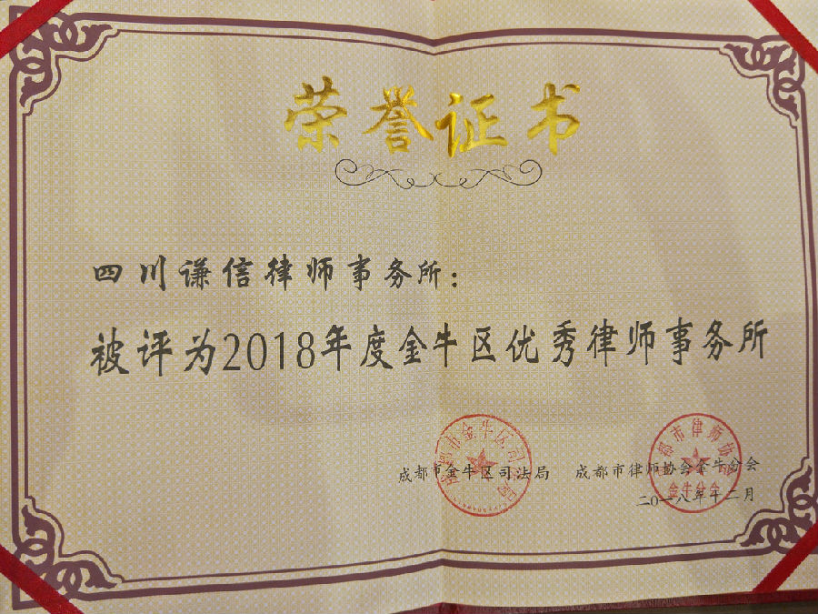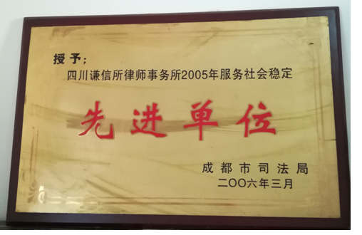 2011年我所曾获“成都市优秀律师事务所”称号。