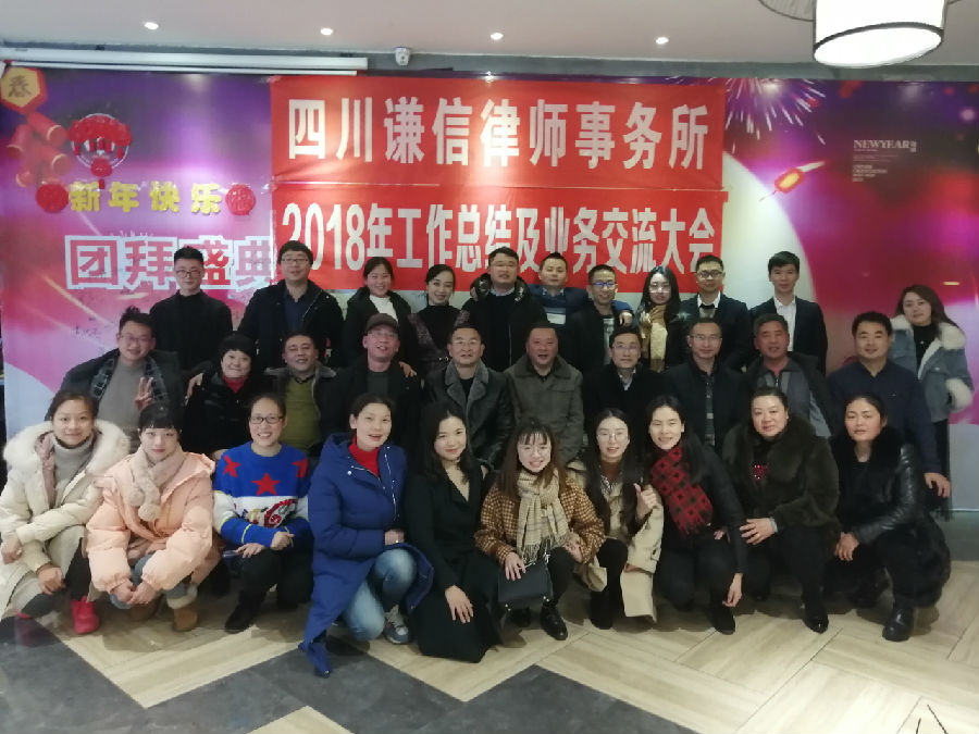 昨日, 四川谦信律师事务所2018年度工作总结会议暨年会在成都天府广场人保大厦11楼举行。事务所主任颜诗树就2018年度工作进行了总结和对2019年工作计划作出重要安排,寄希望全所律师再接再厉,不忘初心、牢记使命,在来年取得更加优异的成绩。事务所副主任刘杰也发表了重要讲话。事务所副主任包传君、罗晓平、罗文方、贾毅和近30名律师参加了会议(部分律师因开庭或在外等没能参加)。