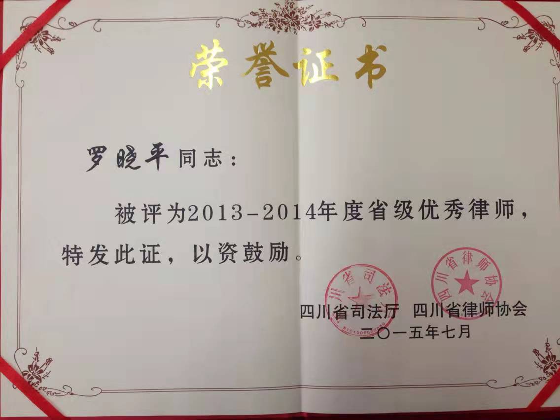 罗晓平律师2005年开始从事律师工作,2005年度、2006年度均被四川谦信律师事务所评选为优秀律师,2007年3月成为四川谦信律师事务所合伙人、副主任,2008年入选中国建筑房地产专业律师杂志,2009年罗晓平律师团队致力于提供纵深法律服务。
